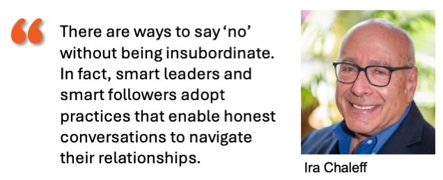 There are ways to say “no” without being insubordinate. In fact, smart leaders and smart followers adopt practices that enable honest conversations to navigate their relationships.