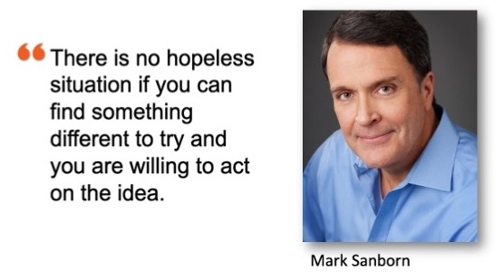 Mark Sanborn: If I ever re-title the book, I’ll call it You Don’t Need a Title to Be a Leader But If You Do It Right a Title Won’t Mess You Up. I’ve got nothing against titles per se, but they’re often misunderstood. Skills and results make you a leader. Titles should confirm leadership but they can never bestow it.